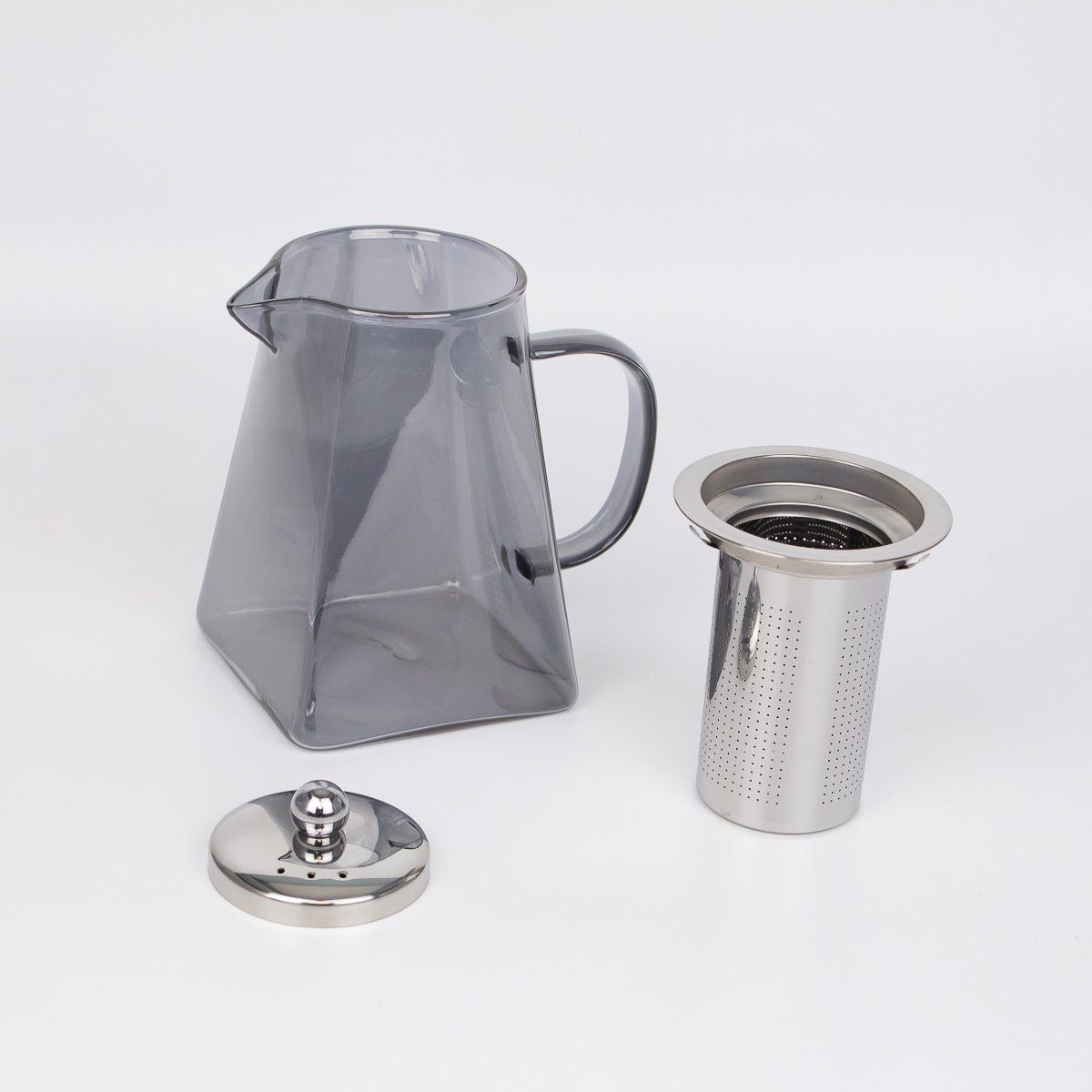 Заварочный чайник объемом 0,75 литр, выполненный из стекла с оттенком серого, представляет собой сочетание современного дизайна и традиционного подхода к приготовлению чая. Чайник изготовлен из высококачественного термостойкого стекла, которое позволяет наблюдать за процессом заварки листьев, одновременно поддерживая температуру напитка.