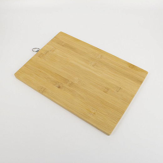 Разделочная доска размерами 34 × 24 × 1,3 см, выполненная из бамбукового массива, представляет собой функциональный и экологичный аксессуар для кухни.
