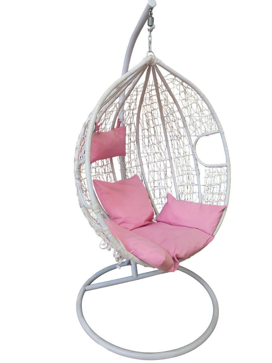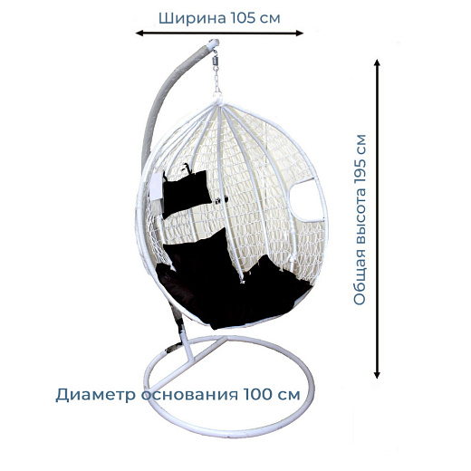Кресло-кокон подвесное, 105x100x195см, белое, подушка коричневая