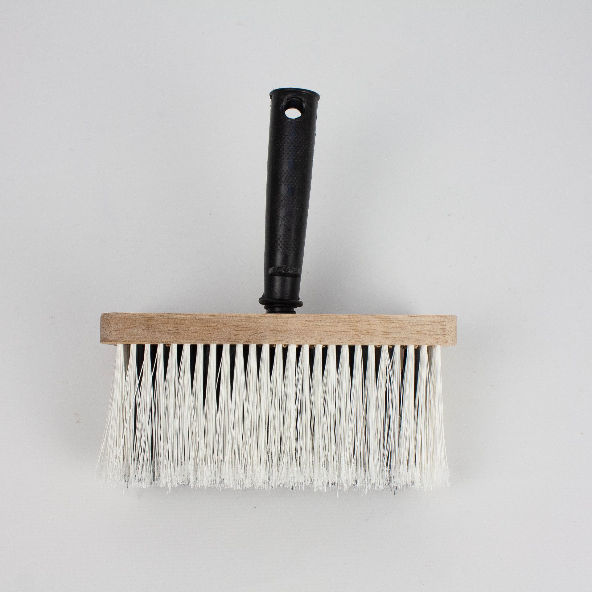 Искусственная щетина, деревянный корпус, полая пластиковая ручка.
