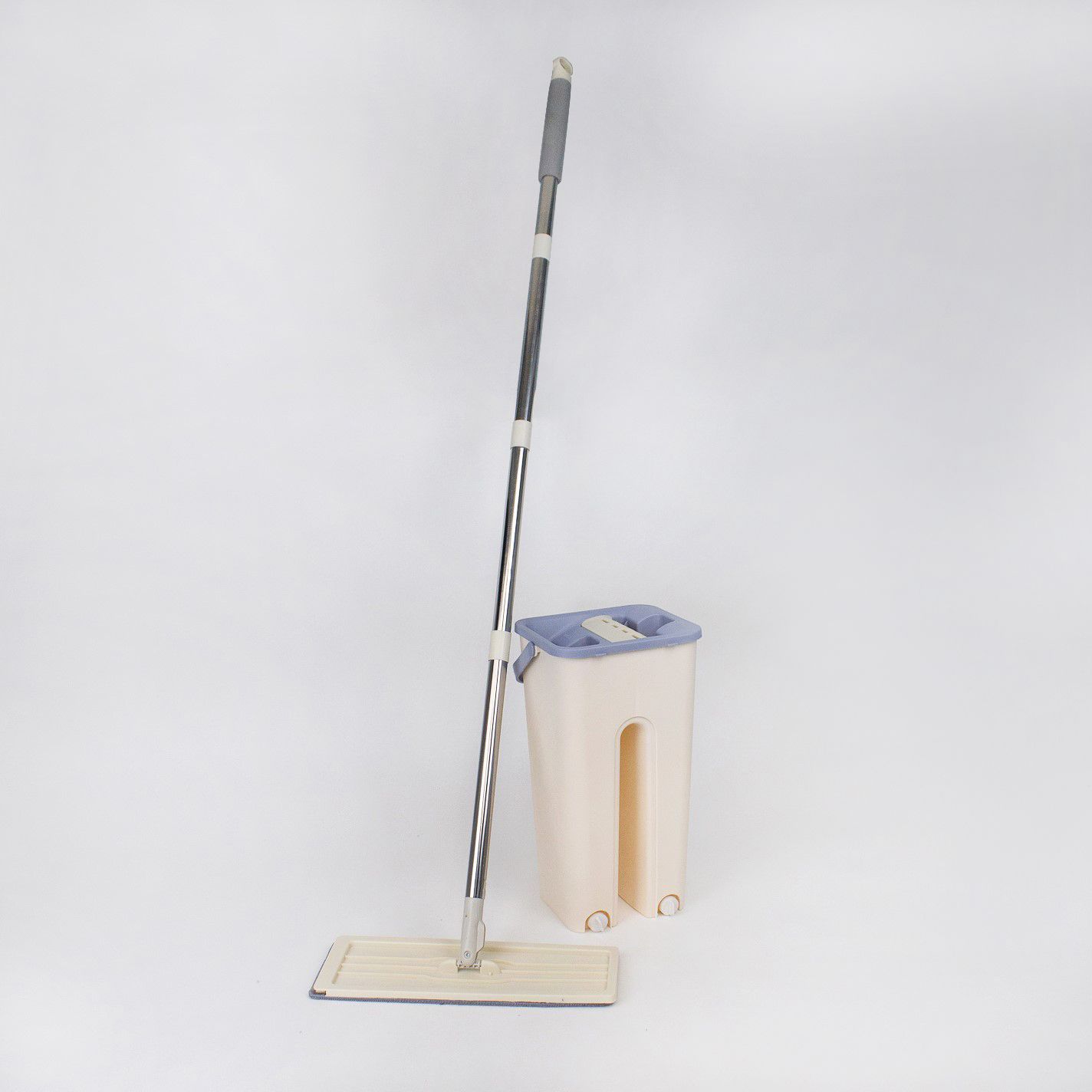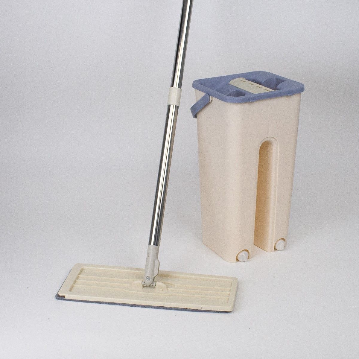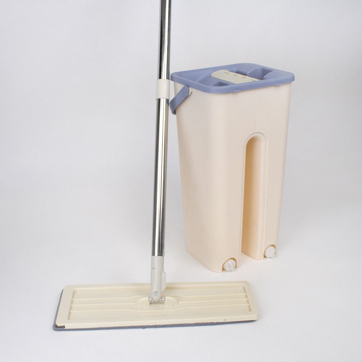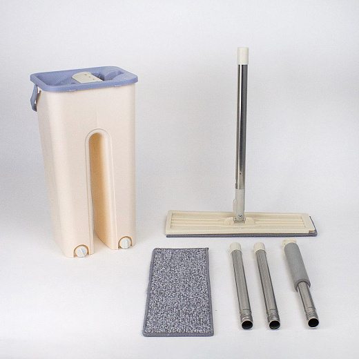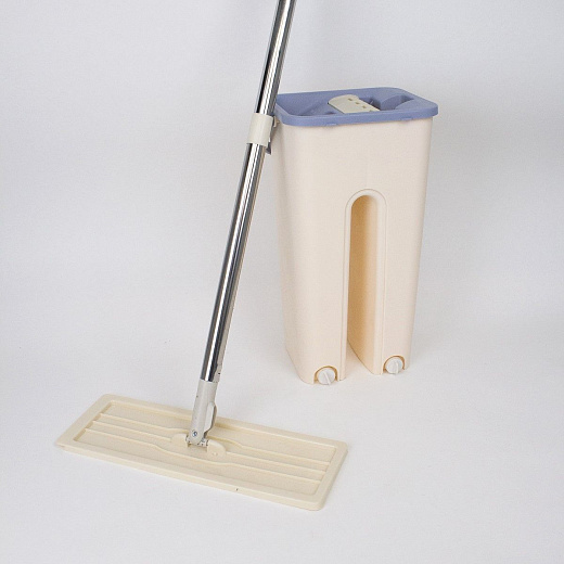 Комплект для уборки швабра и ведро с отжимом бежевый 2 насадки