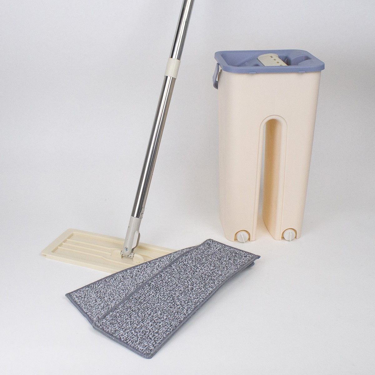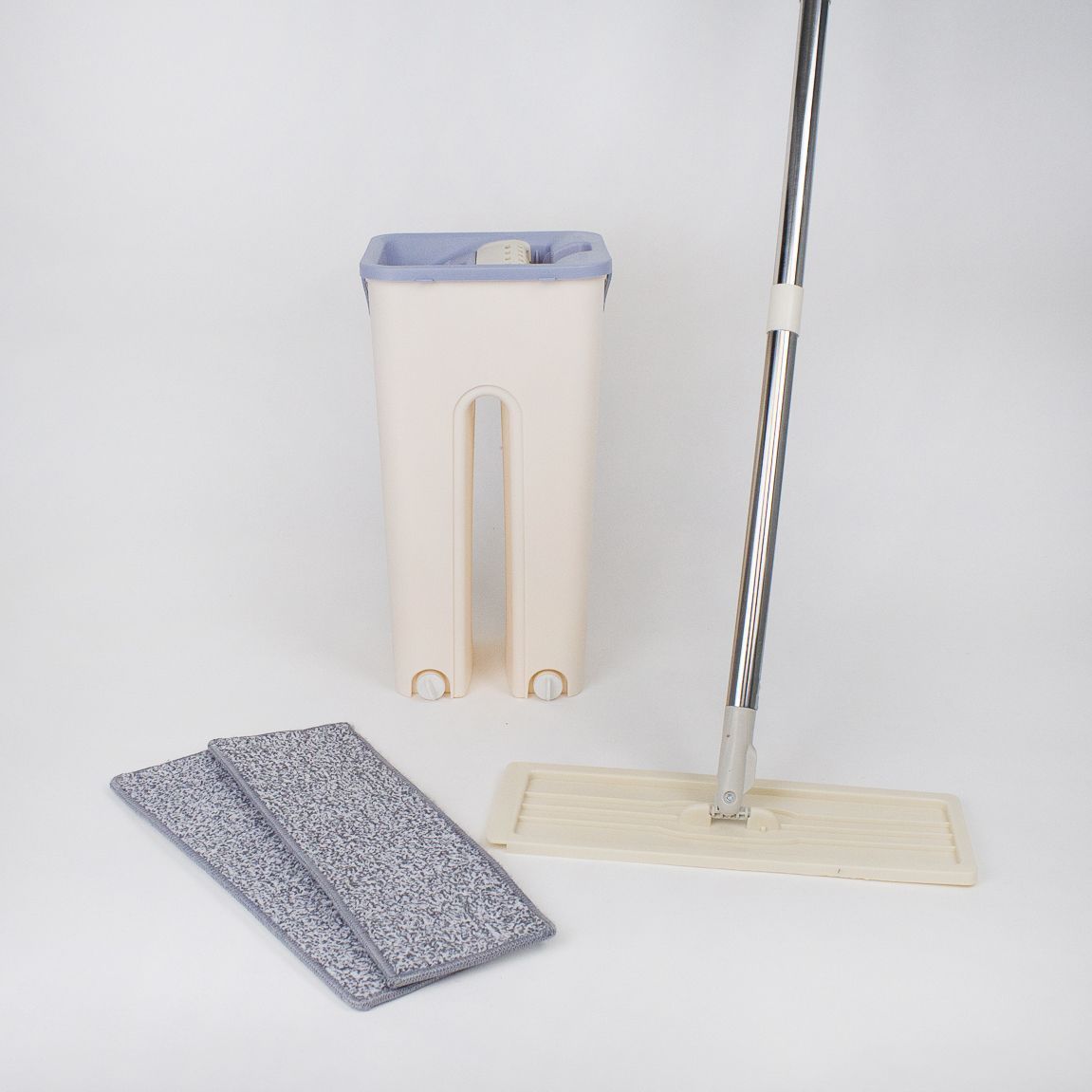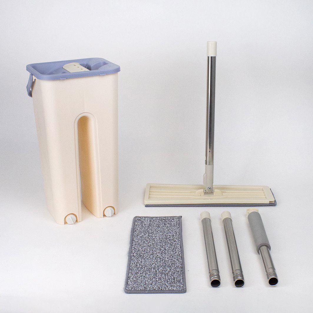 Комплект для уборки: Швабра и ведро с отжимом, бежевый, 2 насадки.