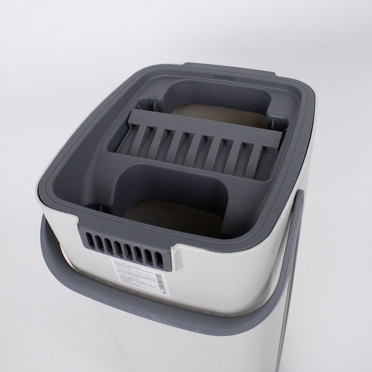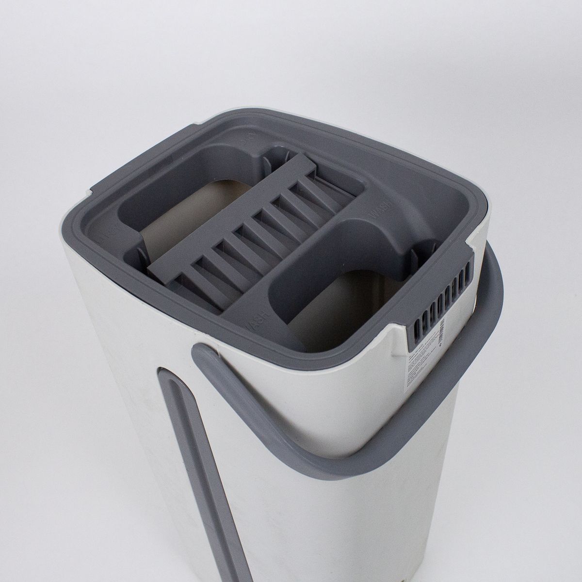 Система отжима: Механизм отжима встроен в крышку ведра, легко сжимает швабру и выводит излишки воды назад в резервуар