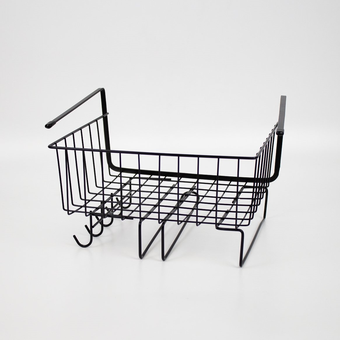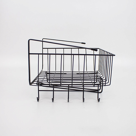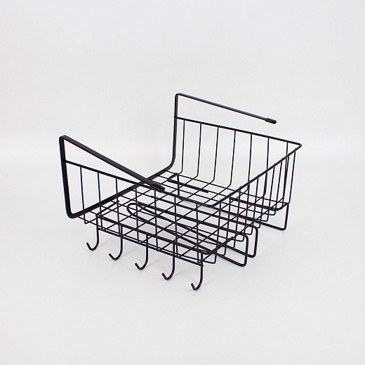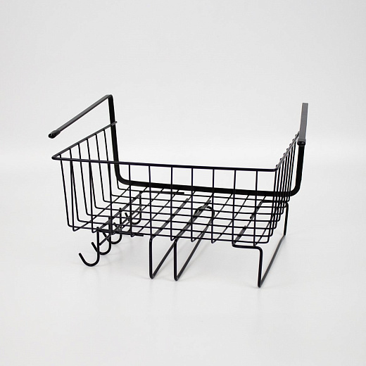 Корзина подвесная на полку с держателями для полотенец и кружек 30х24,5х18,5 см черный металл