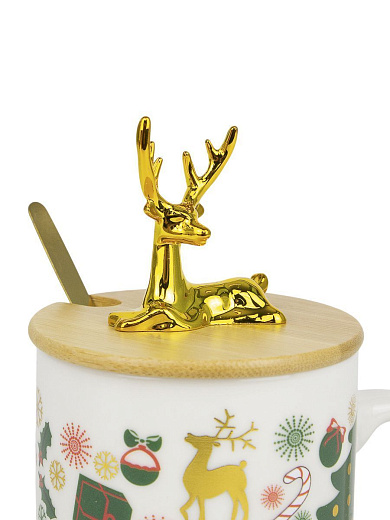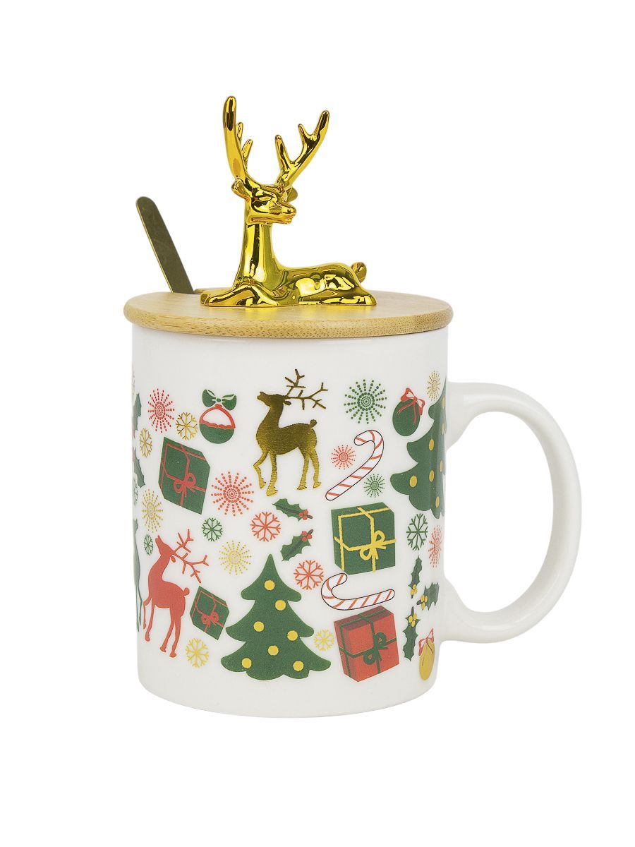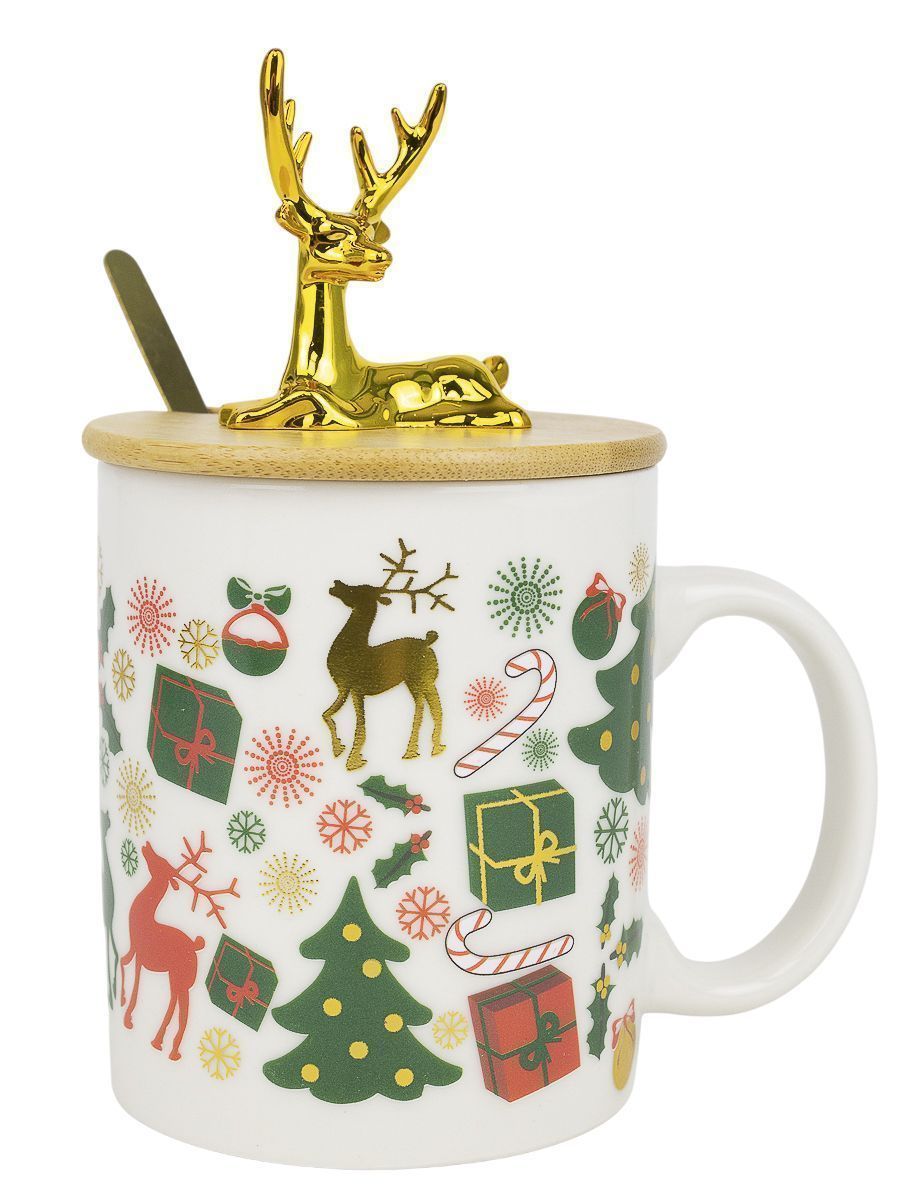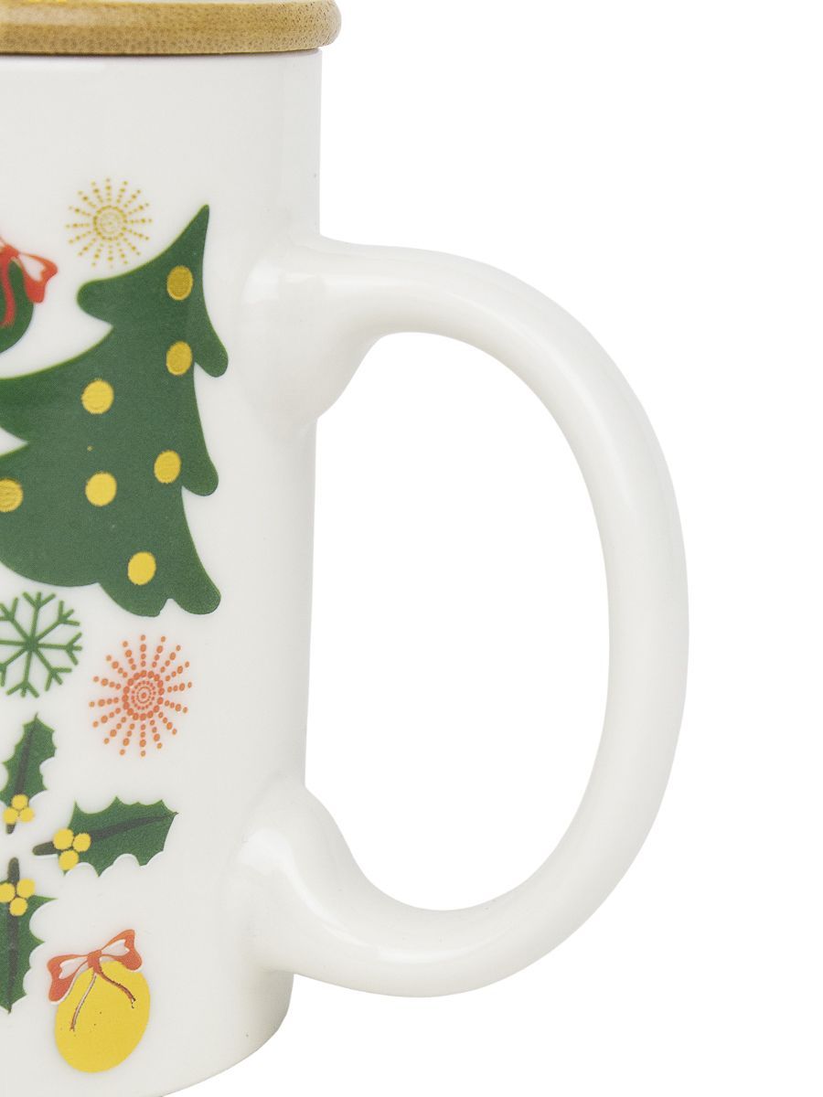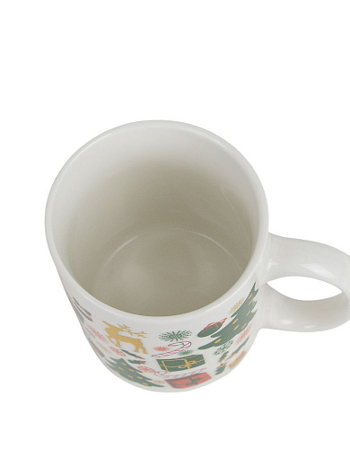 Новогодняя кружка объёмом 320 мл, сделанную из качественной керамики. Она украшена праздничной тематикой, что создаст уютную атмосферу и порадует любителей тёплых напитков.