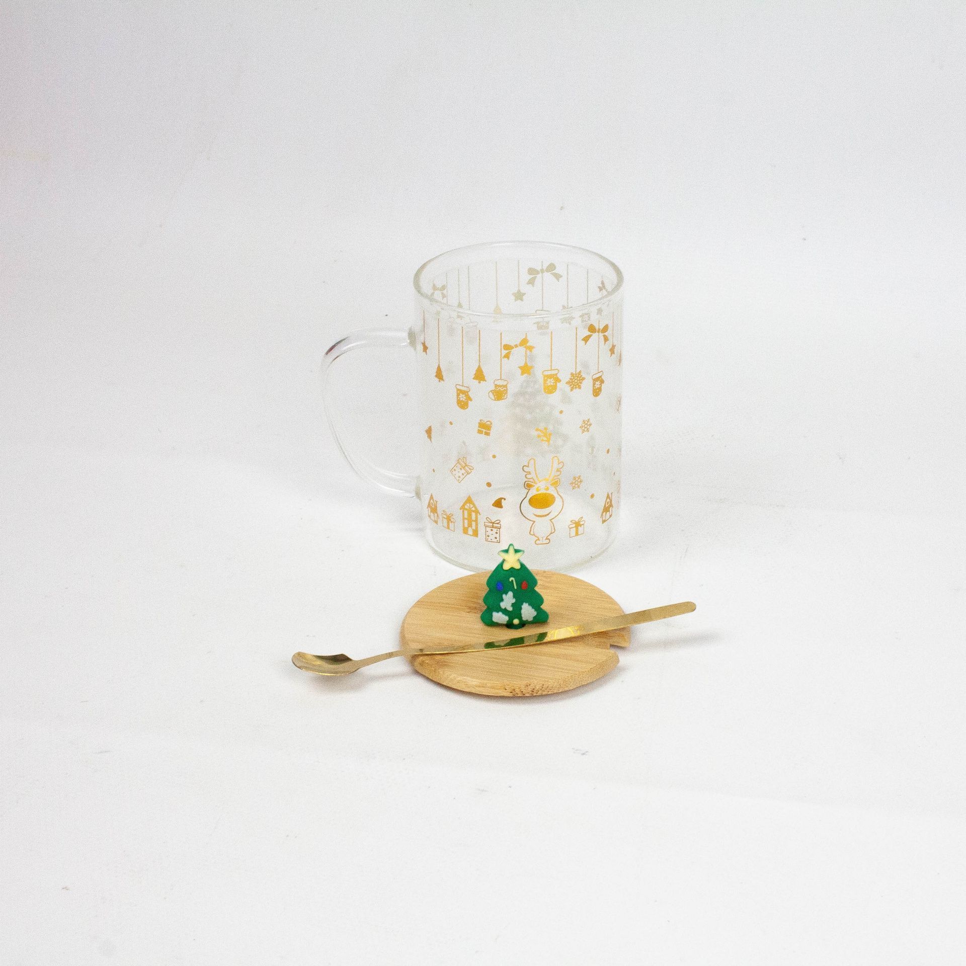 Кружка Новый Год с трубочкой и крышкой 410мл стекло DOH1129