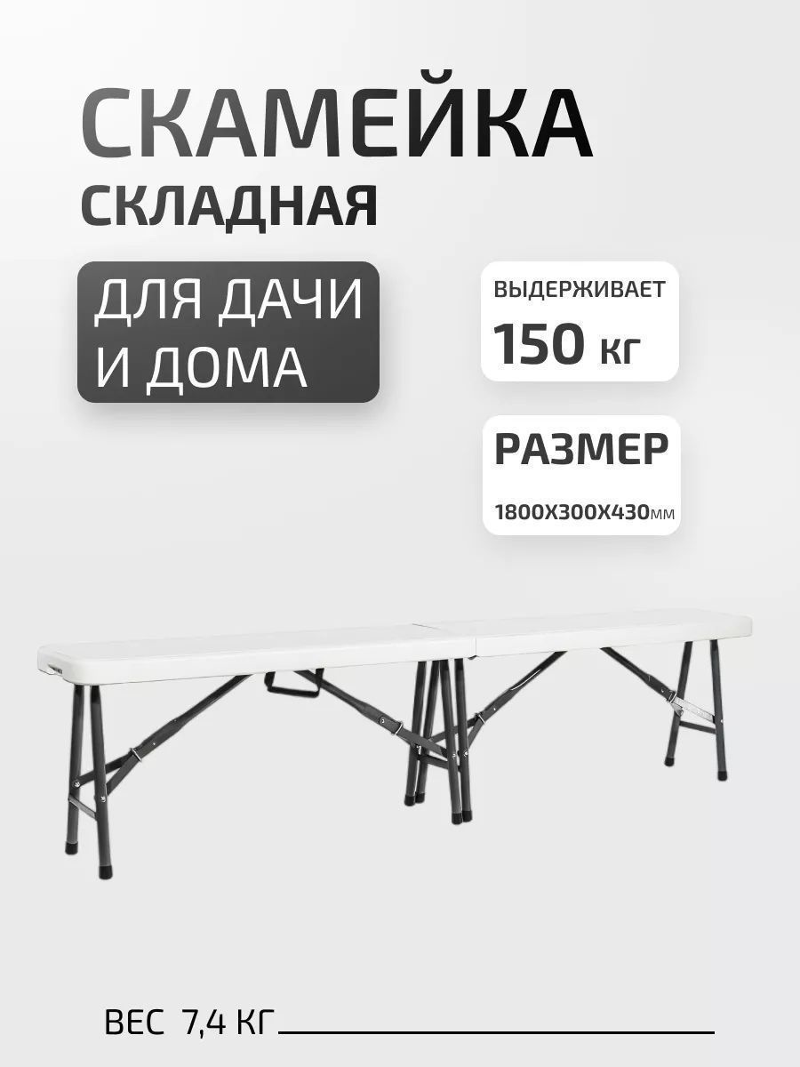 Складная скамейка 180х30х43 см - практичное решение для кемпинга, мероприятий и садового участка!