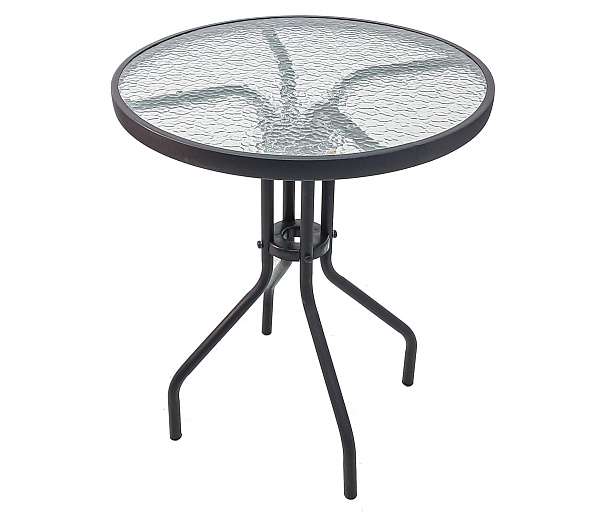 Стол садовый круглый D60х70см стекло/металл, цвет коричневый