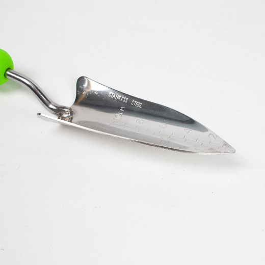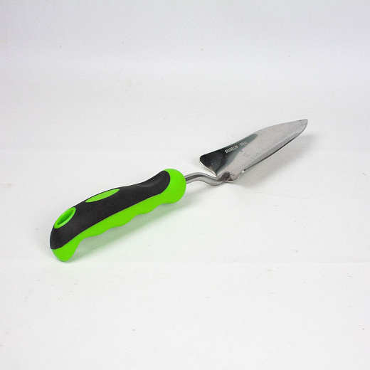 Это практичный инструмент для садоводов, который помогает аккуратно извлекать растения из горшочков без повреждения стебля и корневой системы. Узкая форма совка позволяет работать в ограниченном пространстве и точно формировать лунки нужного размера.