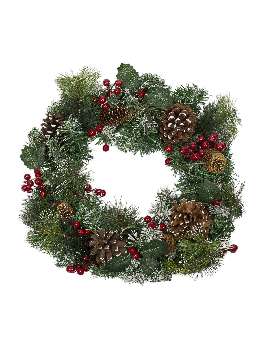 Венок хвойный комбинированный с шишками, ягодами 50см