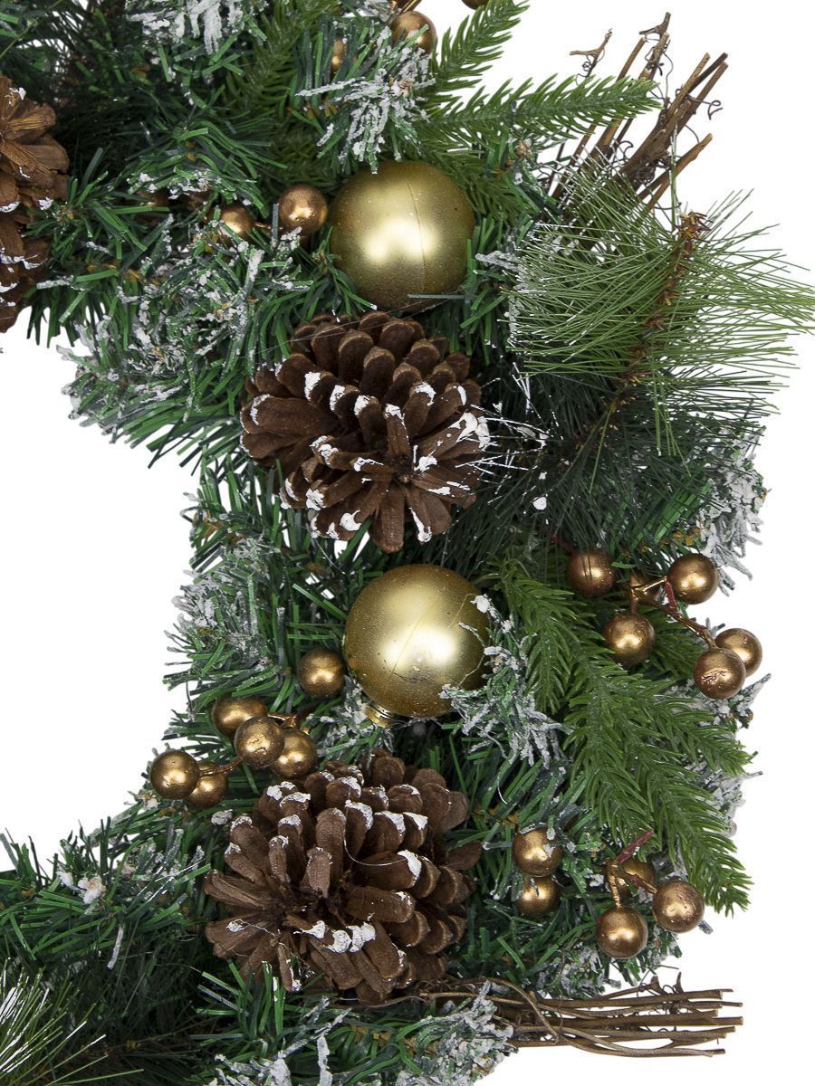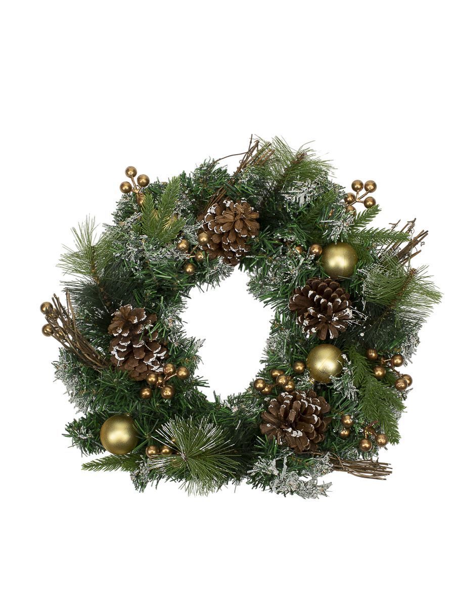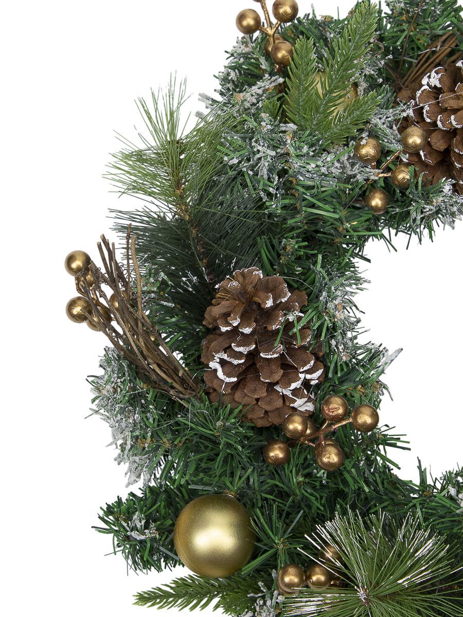 Венок хвойный заснеженные кончики с шишками, ягодами 50см 1001367 комбинированный