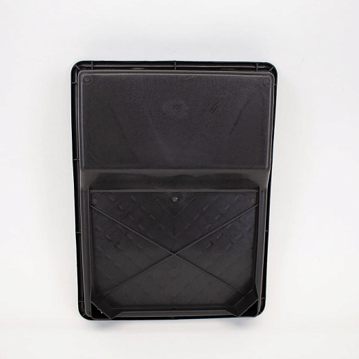Размеры лотка составляют 300 х 370 мм, что обеспечивает достаточное пространство для размещения большого объема краски и комфортного окунания валика.