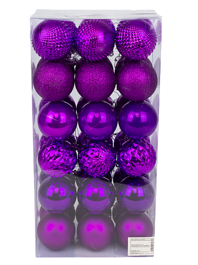 Набор ёлочных шаров 36шт 6см пластик фиолетовый