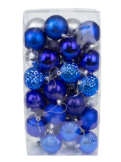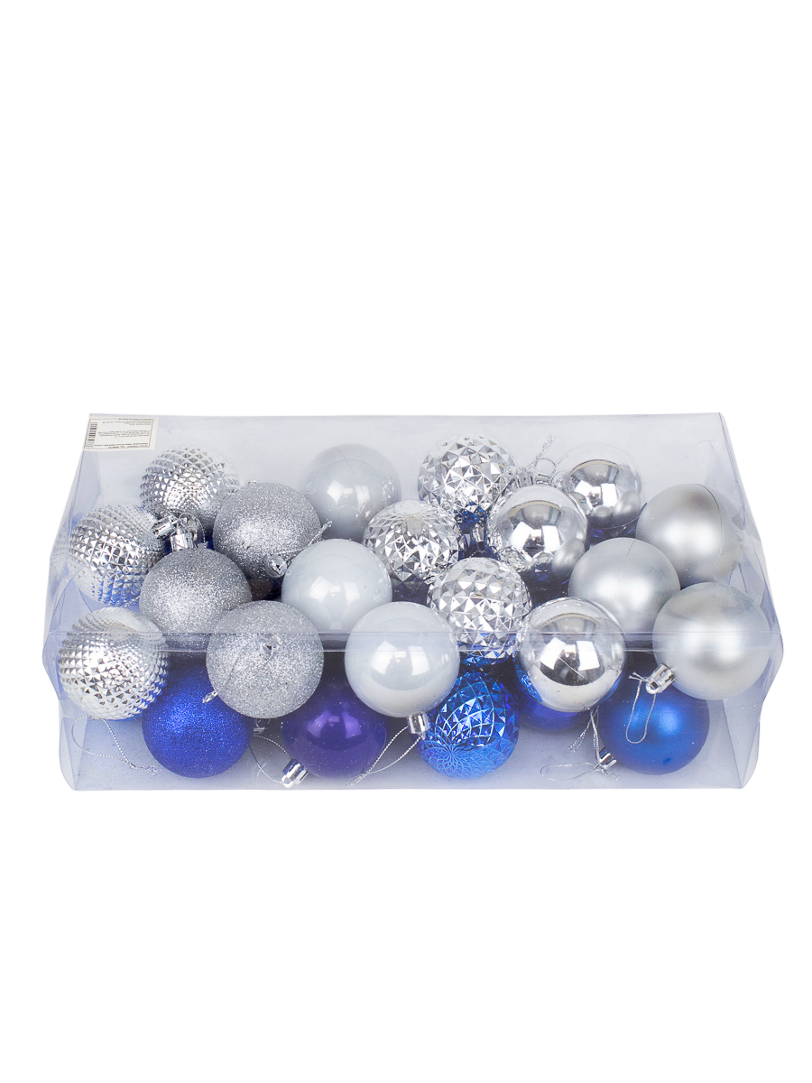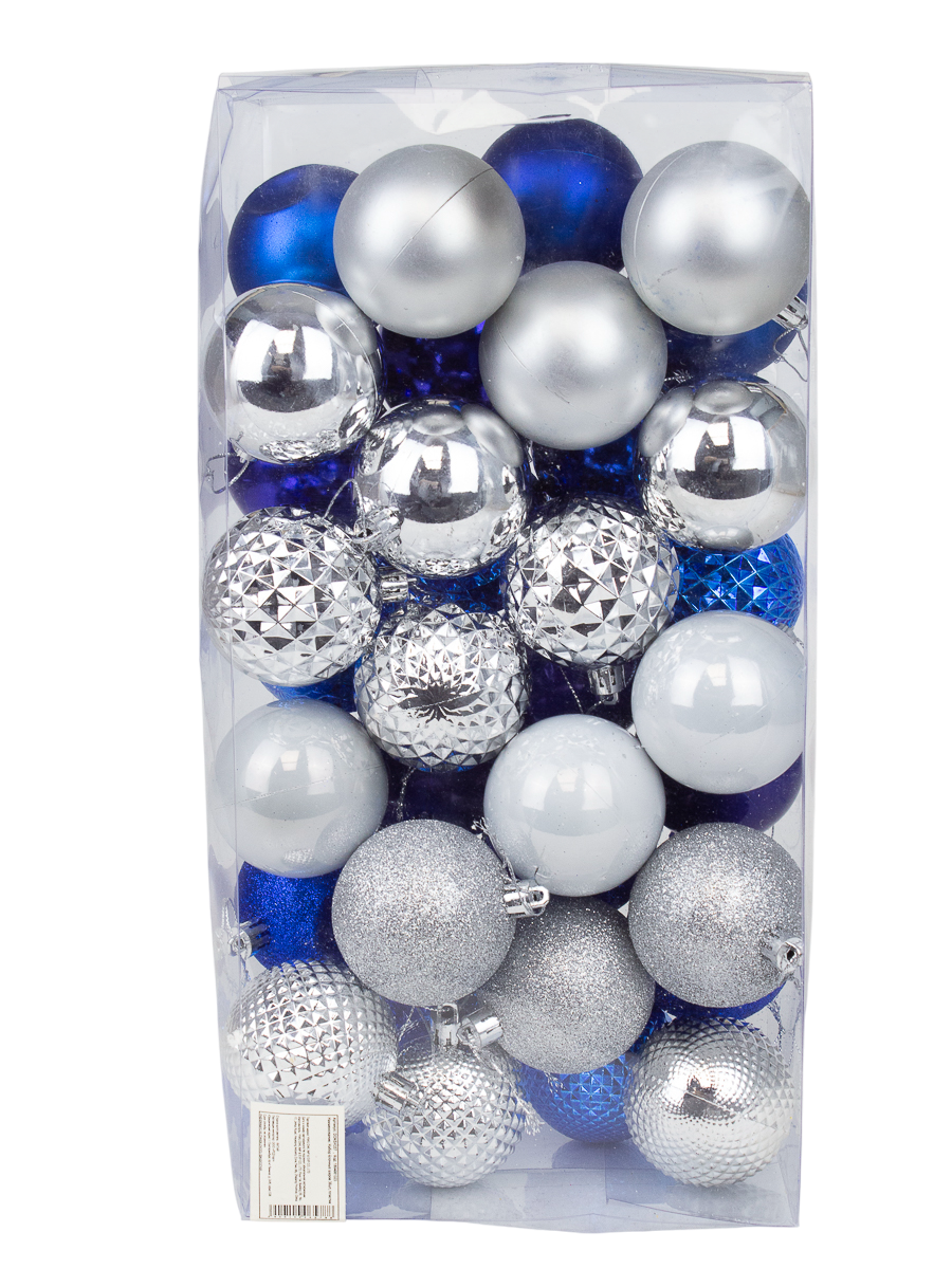 Набор ёлочных шаров 36шт 6см пластик голубой, белый