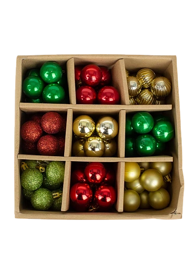 Новогодний набор состоит из 99 маленьких пластиковых шариков диаметром 3 сантиметра, выполненных в классических цветах праздника: красный, зелёный и золотой. Маленькие размеры позволят вам равномерно распределить украшения по всей площади вашей красавицы-ёлки, добавив ей объём и игривость. Благодаря яркой расцветке и гладкой поверхности, шары будут отражать свет, создавая эффект мерцания и переливания. Данный комплект станет незаменимым помощником в создании сказочной атмосферы, превратив ваш дом в настоящий зимний праздник.