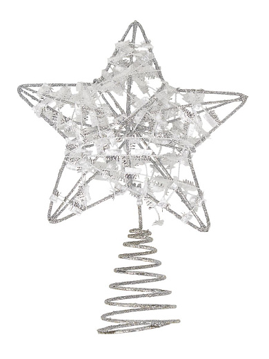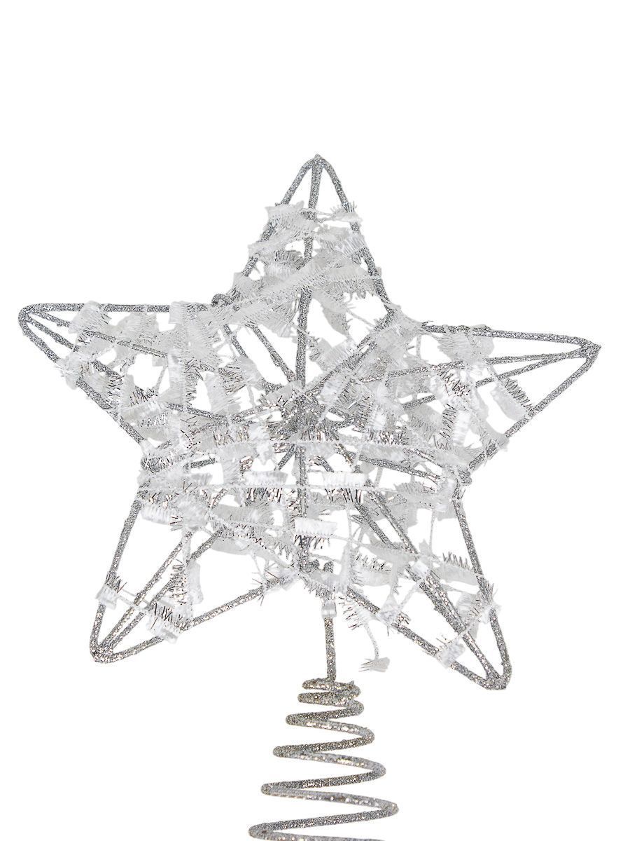 Красная металлическая верхушка для новогодней ёлки в виде звезды размером 14х19 см — это заключительный аккорд, завершающий праздничную композицию и задающий тон всему оформлению. Исполнение из металла гарантирует высокое качество и долговечность, а серый цвет усилит эмоциональное восприятие новогоднего торжества.