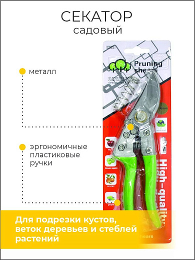 Секатор садовый 20см металл, пластик - надежный помощник для ухода за садом и огородом!