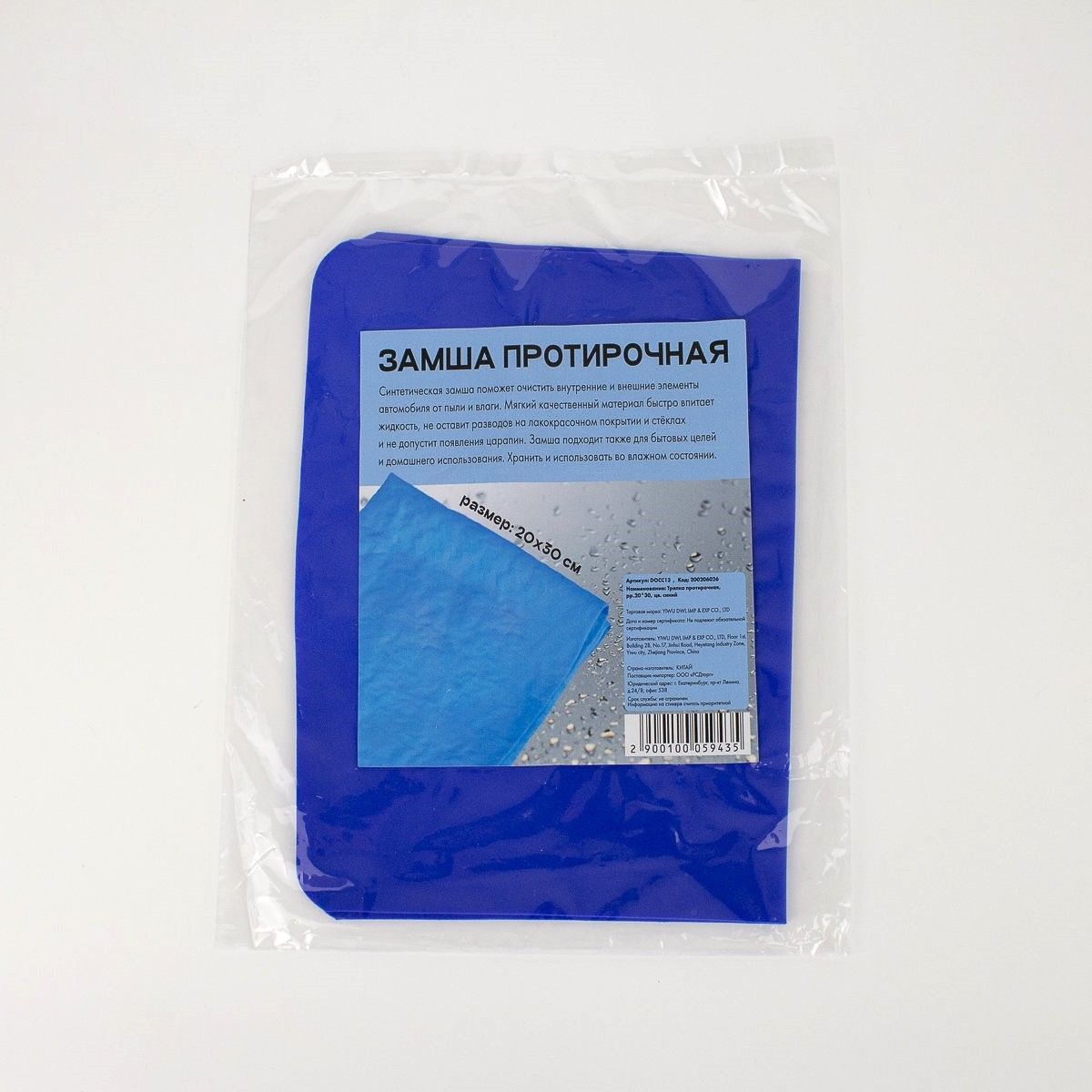 Тряпка протирочная для автомобиля 20х30см синяя