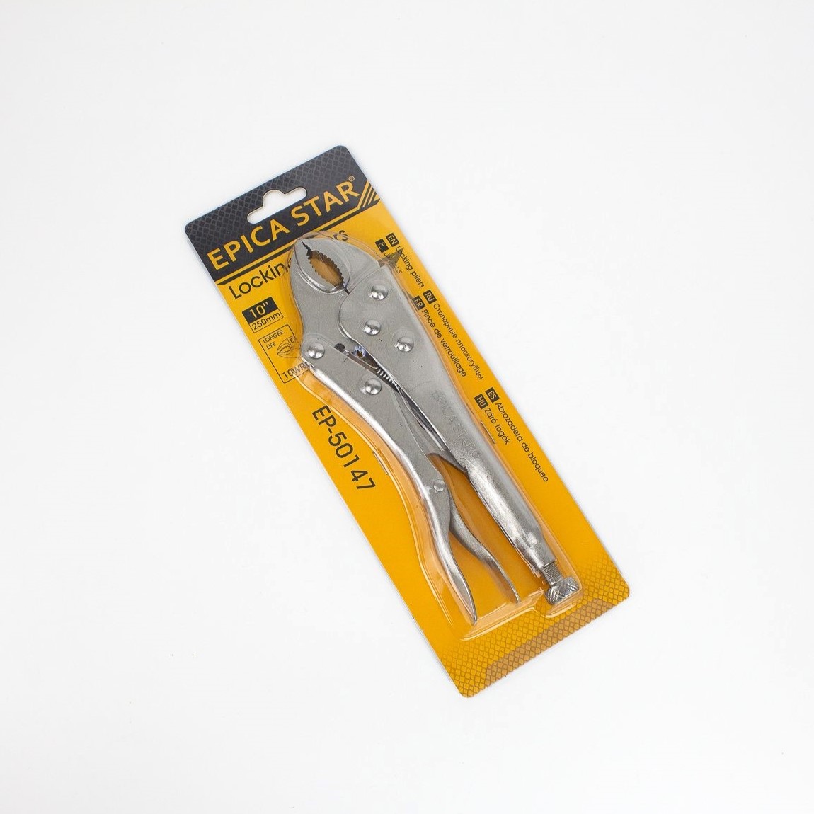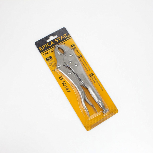 Клещи EP-50147 изготовлены из высококачественной стали, обеспечивающей прочность и долговечность инструмента. Они предназначены для захвата и удержания деталей различной формы и размера, позволяя эффективно работать даже в труднодоступных местах. Конструкция позволяет надежно фиксировать предметы благодаря острым зубцам и эргономичной ручке, снижающей нагрузку на руки оператора.