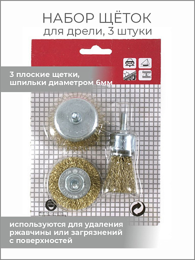 Набор металлических круглых щеток 6мм для дрели, 3шт