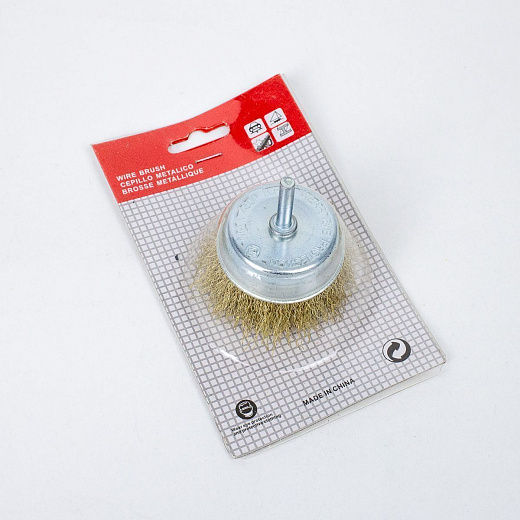 Щетка-чашка для дрели со шпилькой мягкая 80мм металл