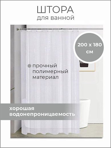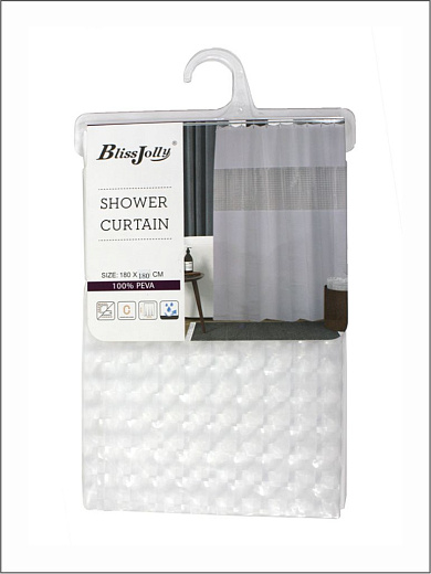Штора для ванной с окошком 180х200cм, peva, белый