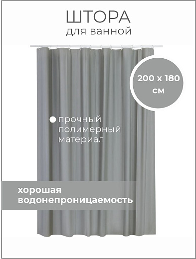 Штора для ванной с окошком 180х200cм, peva, серый