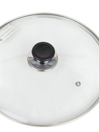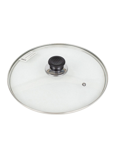 Крышка диаметром 26 см с ручкой толщиной 4,3 мм изготавливается из сочетания стекла и пластика, объединяя лучшие качества обоих материалов. Стекло обеспечивает отличную прозрачность, позволяя следить за процессом приготовления блюда, а ручка из пластика гарантирует удобную эксплуатацию и защиту рук от высоких температур.