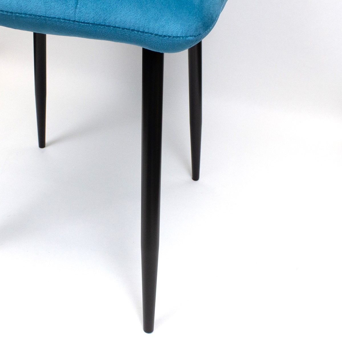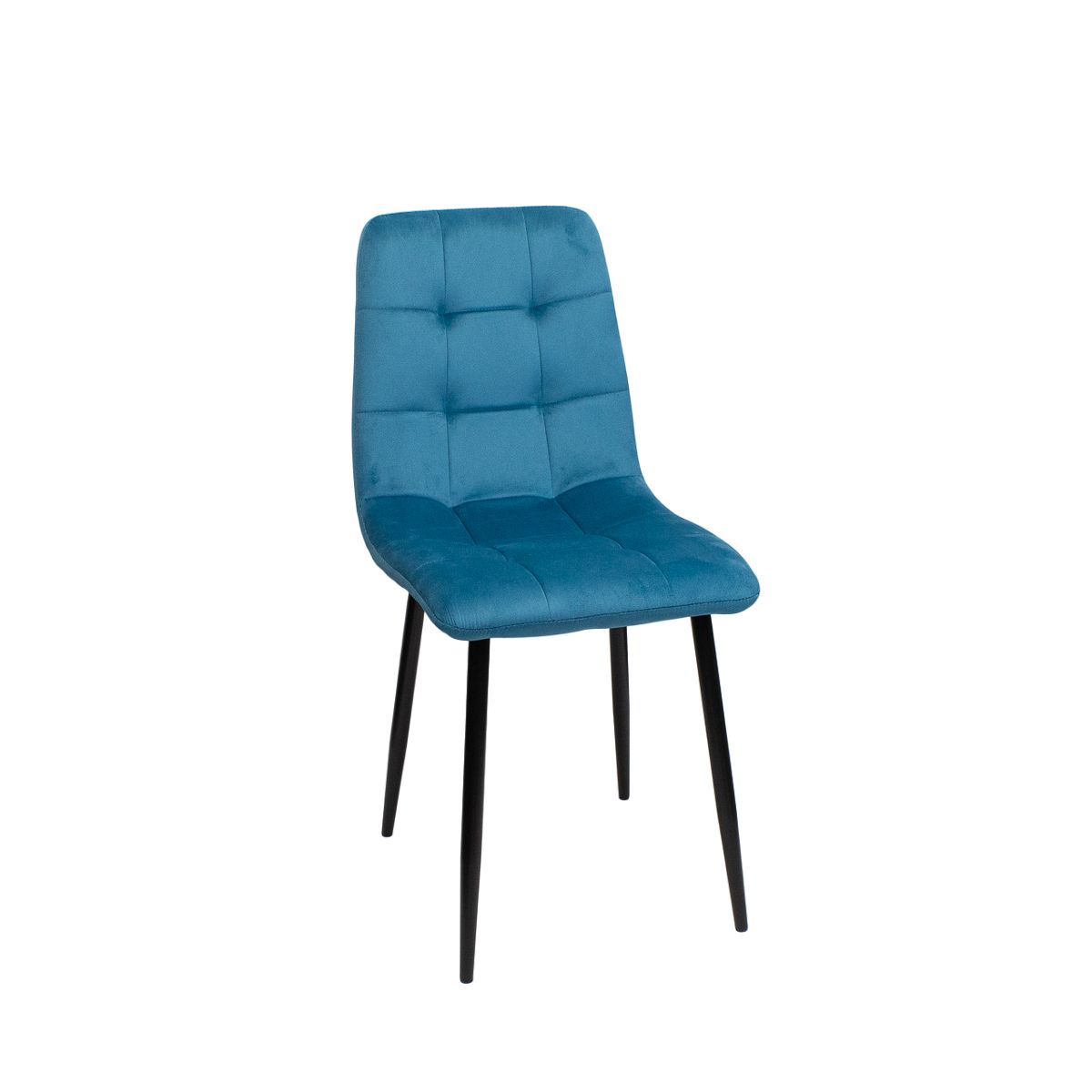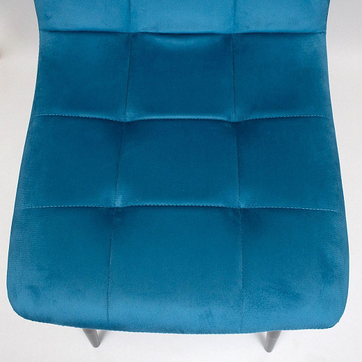 Элегантный стул с мягкой обивкой станет стильным дополнением любого интерьера. Сочетание бирюзового бархата и черных металлических ножек создает современный и изысканный образ.