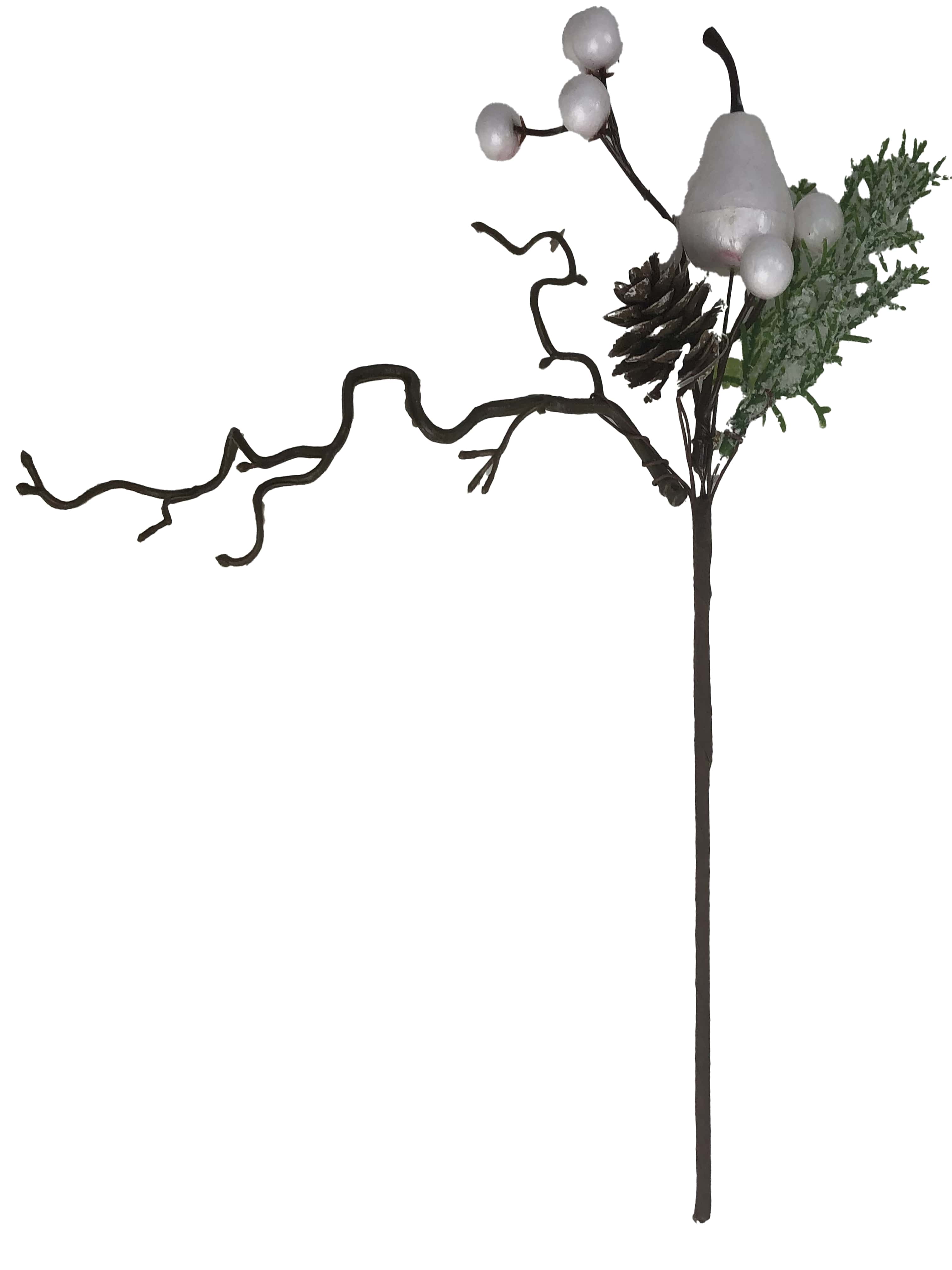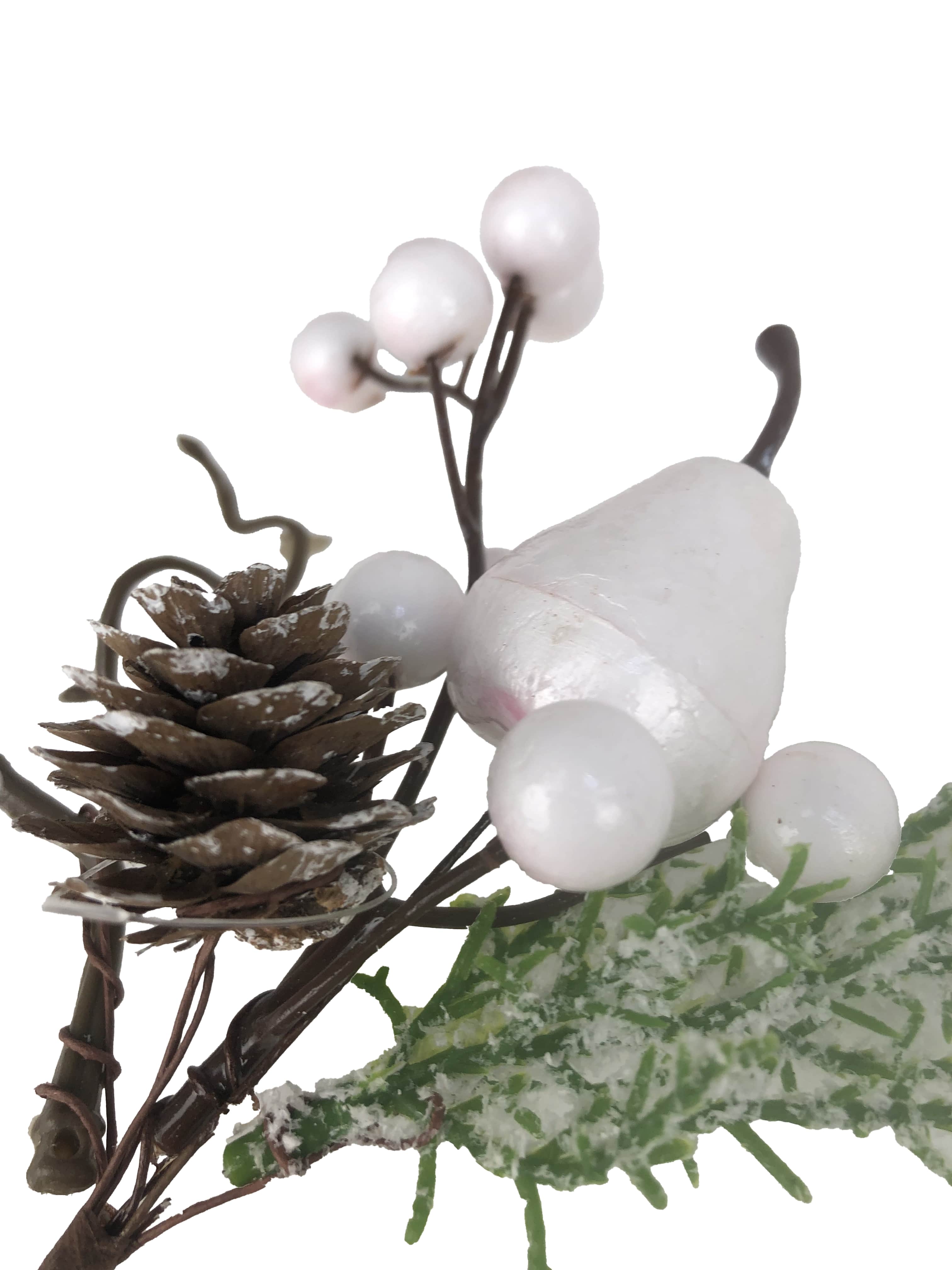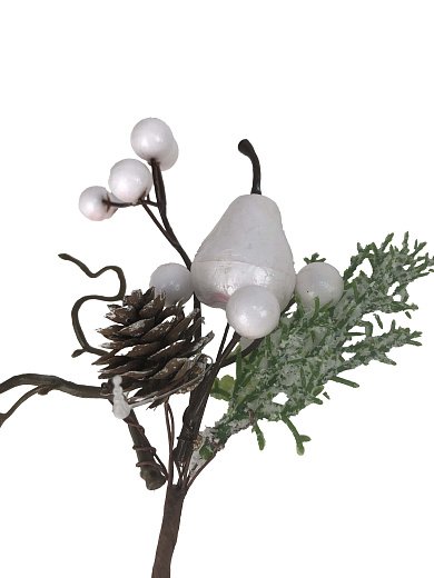 Украшение интерьерное Ветка хвойная с декором 24см, серая