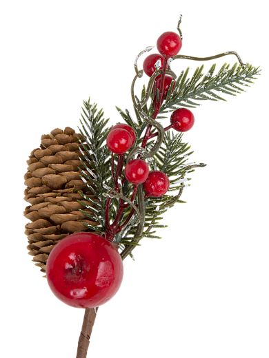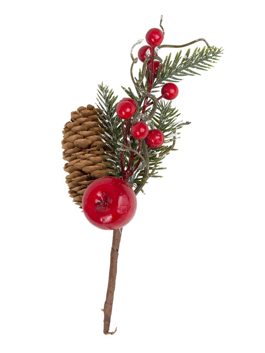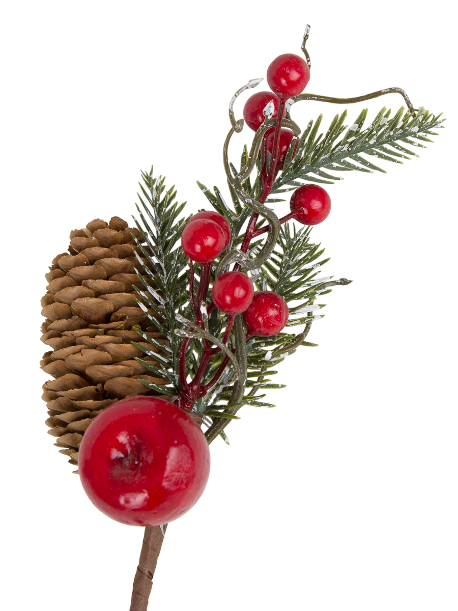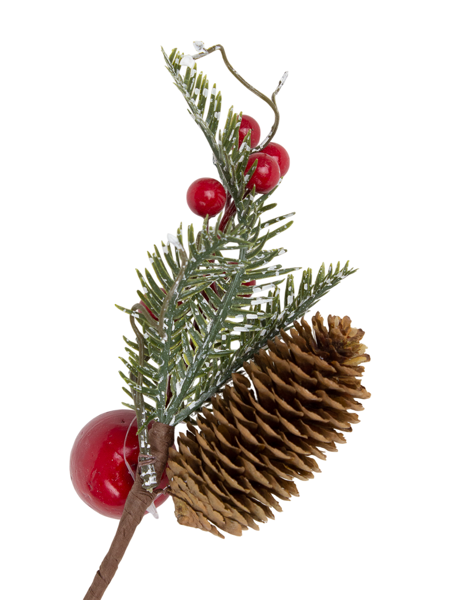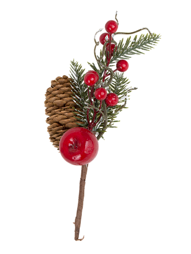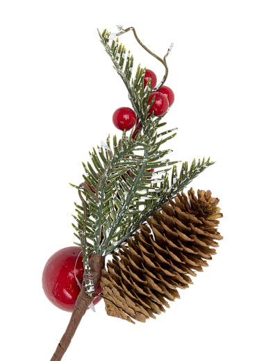 Украшение интерьерное Ветка хвойная с декором 24см