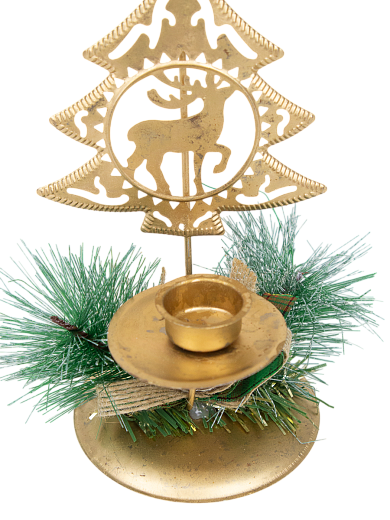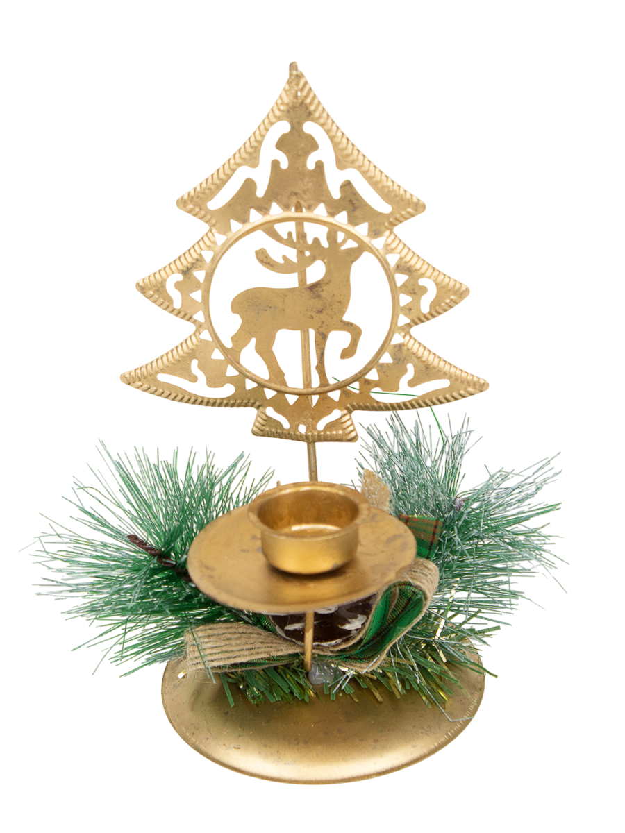 Подсвечник для свечей новогодний металл бронзовый