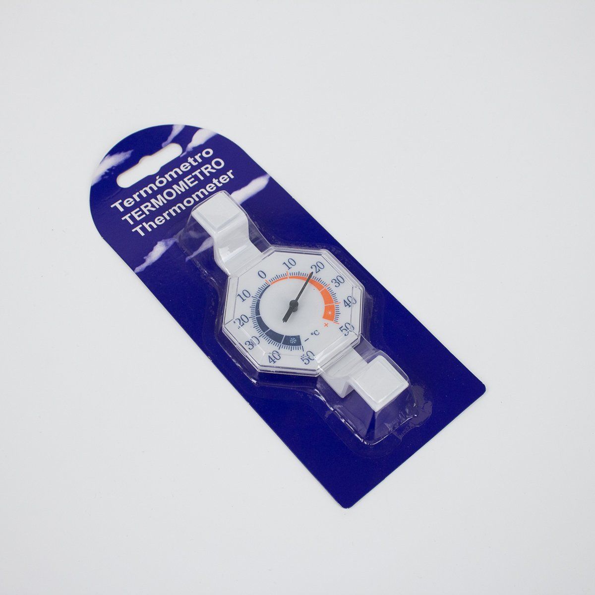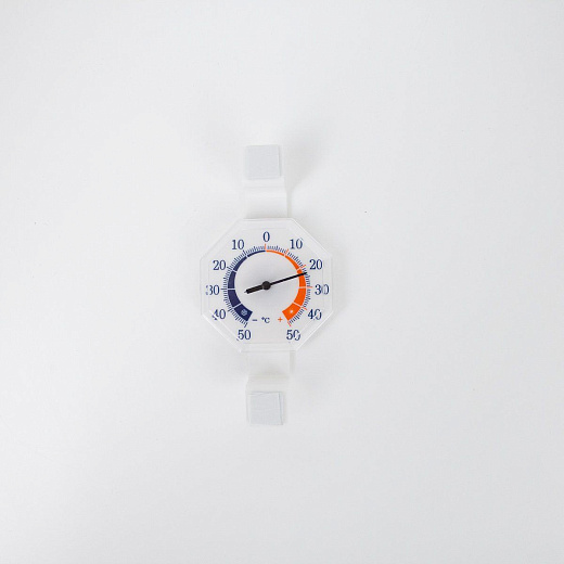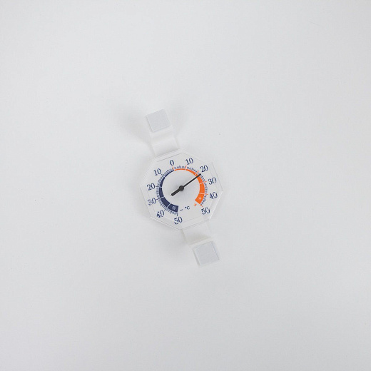Термометр уличный стрелочный на липучке 75х75х12мм белый.