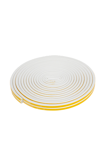 Уплотнитель дверной с профилем D, имеющий размеры 9х7,5 мм и длину 12 метров, выполненный в белом цвете, широко используется для устранения щелей и улучшения герметичности дверей, создавая надежный защитный барьер от внешних факторов.
