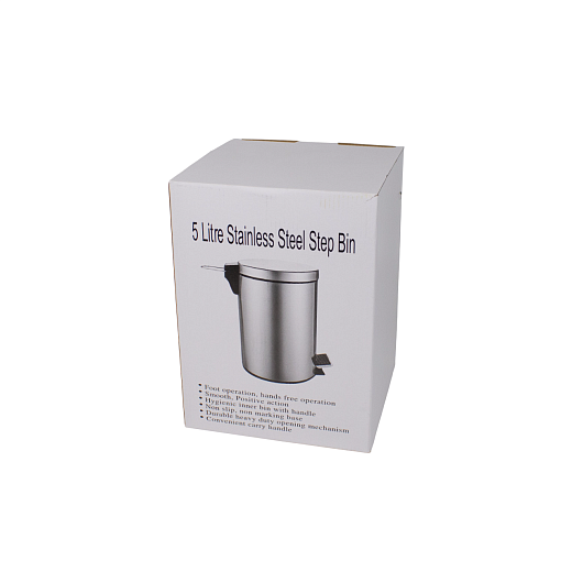 Ведро для мусора с педалью, крышка с доводчиком круглое 5л сталь нержавеющая