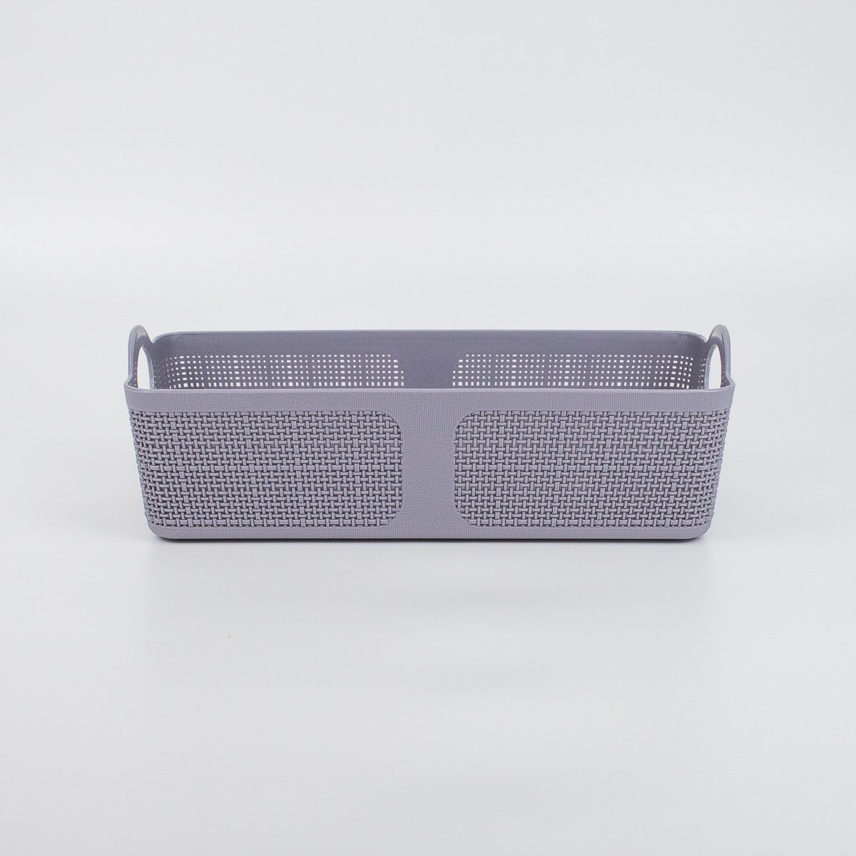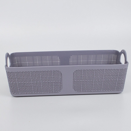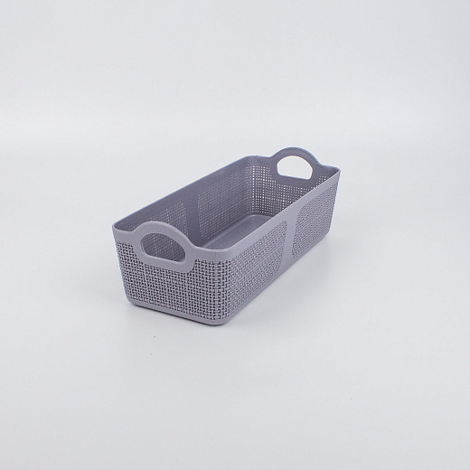 Пластиковая корзина размером 28х12х8 см в сером цвете.