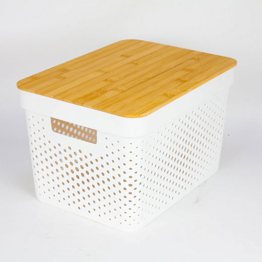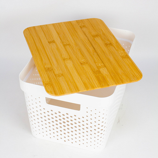 Корзина для хранения с бамбуковой крышкой 36х27х22см