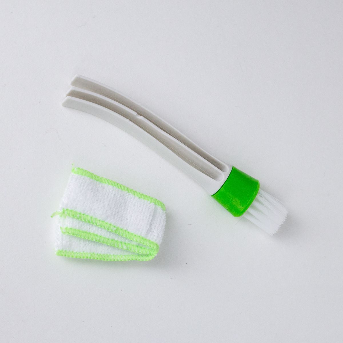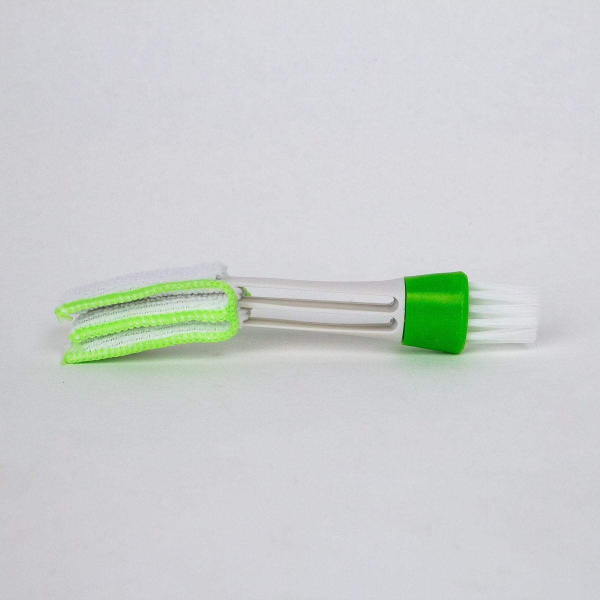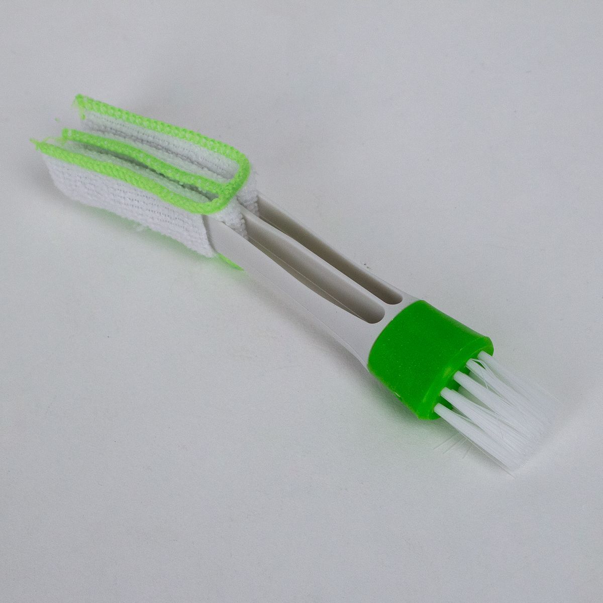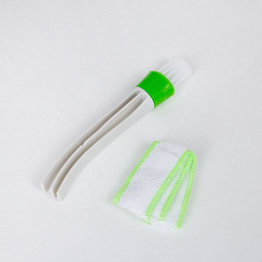 Благодаря гибкой щетине и компактному размеру, щетка легко проникает в узкие щели и труднодоступные места, эффективно удаляя загрязнения. Насадка из микрофибры обеспечивает дополнительную очистку и может использоваться как для сухой, так и для влажной уборки.